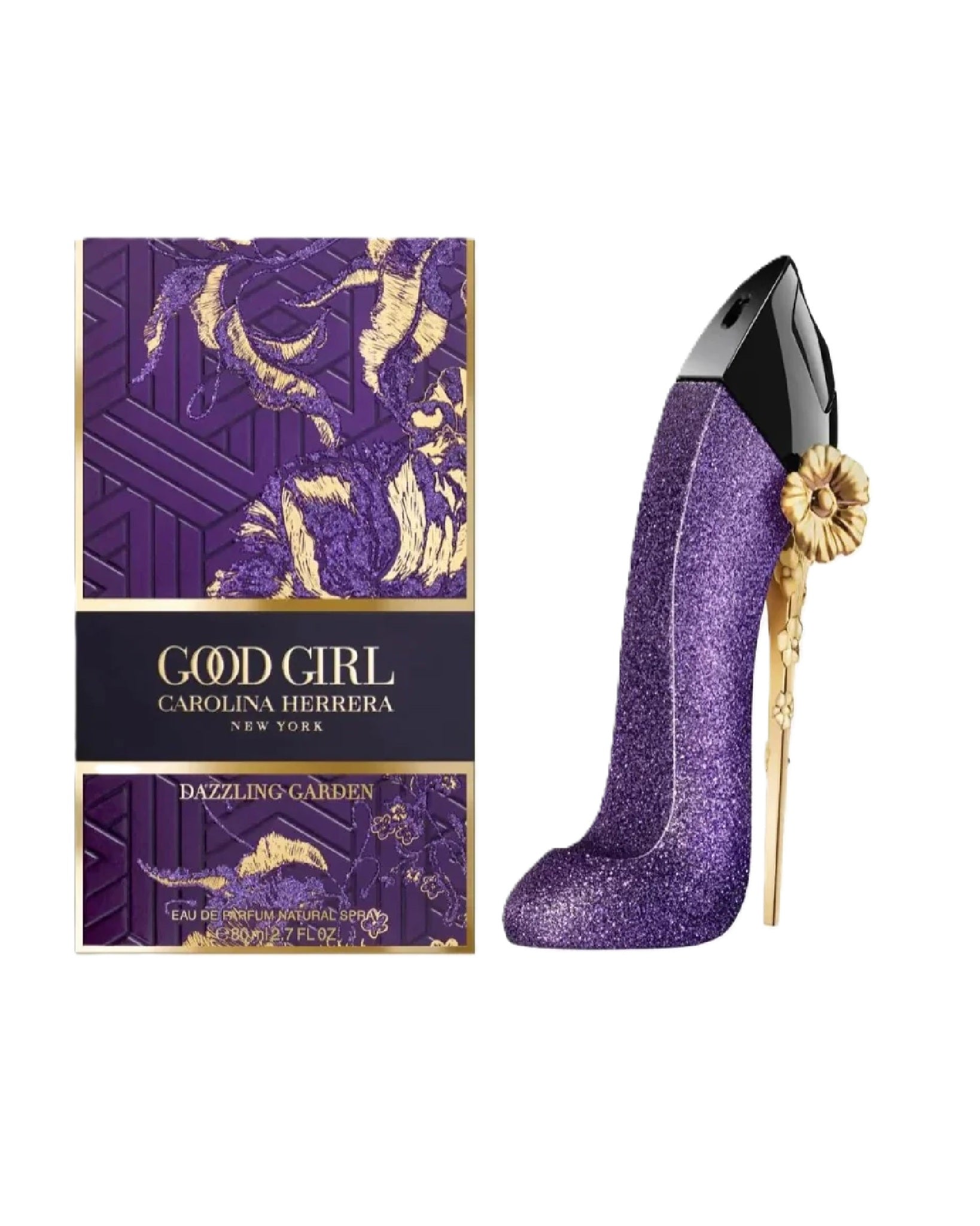 Good Girl Dazzling Garden Eau de Parfum is a feminine floral-gourmand scent from Carolina Herrera’s iconic Good Girl collection. It celebrates modern femininity with a blend of luminous florals, rich gourmand touches, and a hint of seductive warmth — encapsulated in a dazzling purple stiletto-shaped bottle adorned with a golden floral accent.