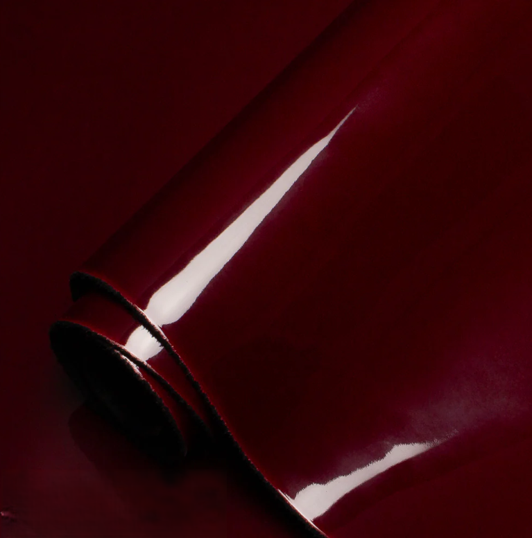 Patent leather is a specialized leather known for its iconic glossy finish. The surface is treated with a high-quality lacquer or polyurethane layer that gives it a mirror-like shine and a smooth, polished texture. This coating enhances durability, protects against light water exposure, and helps maintain the leather’s vibrant color.